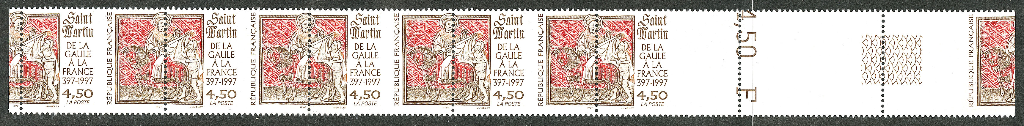 Jaune et vert absents, piquage à cheval. No 3069a, bande de six bdf, superbe. - R (N°et cote Spink-Maury: 8400€) (Image) (Image2)