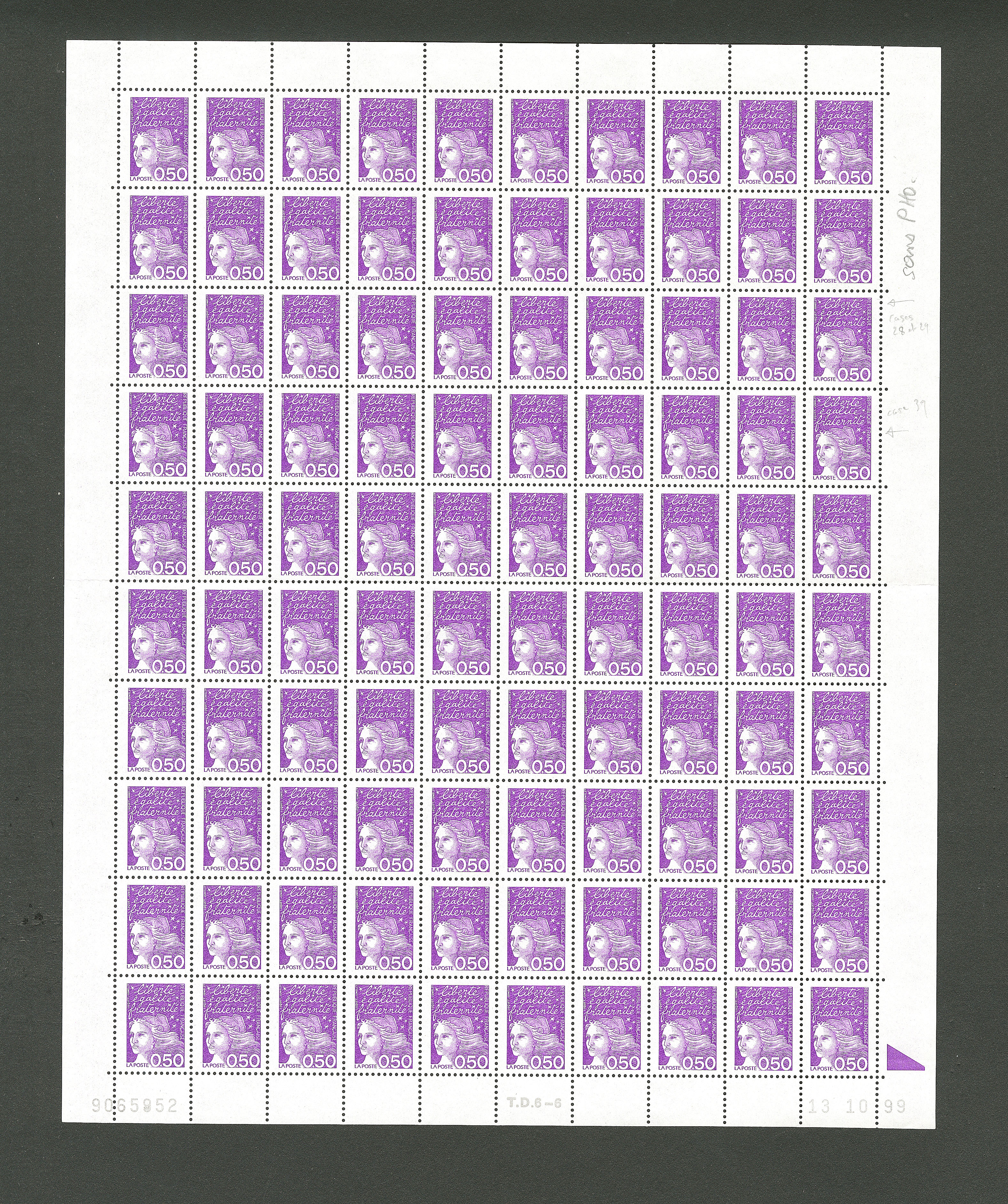 Luquet. Sans phospho. No 3088b, 3 ex TAN dans une feuille de 100 ex. - TB (Image)