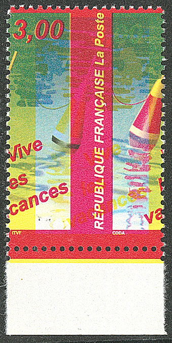 Jaune très décalé et piquage à cheval. No 3225b (YT #3243), bdf. - TB (N°et cote Spink-Maury: 1850€) (Image)