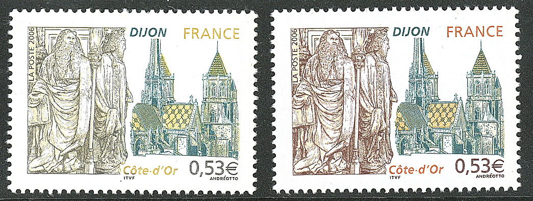 Dijon, brun absent. No 3893a, + normal pour comparaison. - TB (cote Yvert: 150€) (Image)