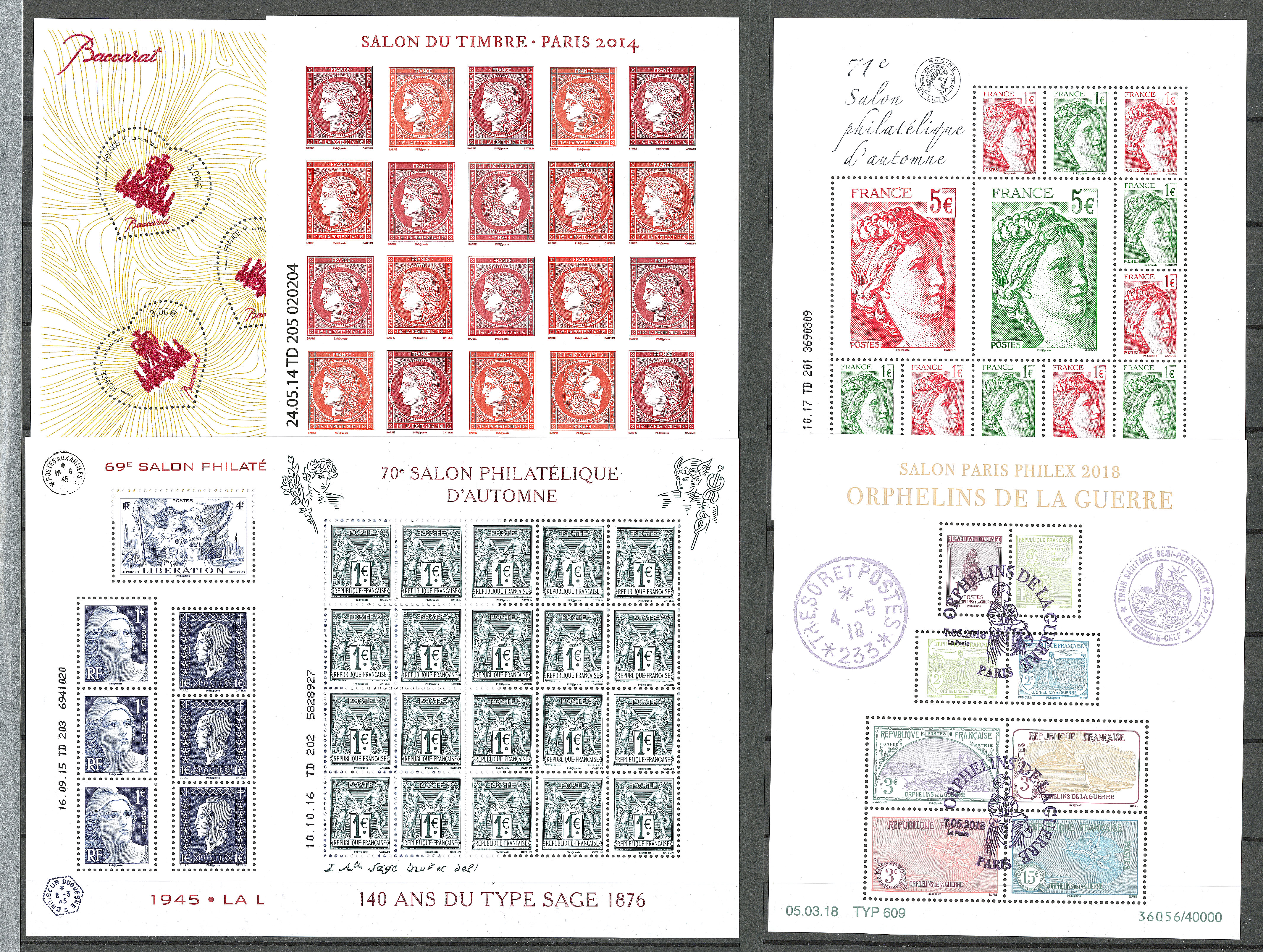 Feuillets. Nos F4871, F4883, F4986, F5094, F5179, F5226 obl cachet de salon. - TB (cote Yvert: 988€) (Image)