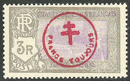 INDE. * France-Toujours. No 230X, large adhérence sinon TB. - R (cote Yvert : 1300€) (Image)