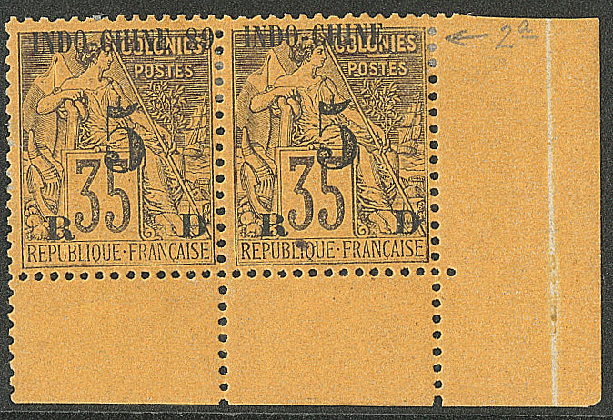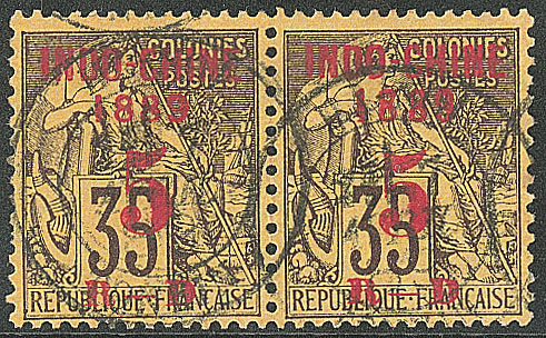 INDOCHINE. * Sans le chiffre "89". No 2aa (2a + 2), paire cdf. - TB (cote Yvert : 650€) (Image)