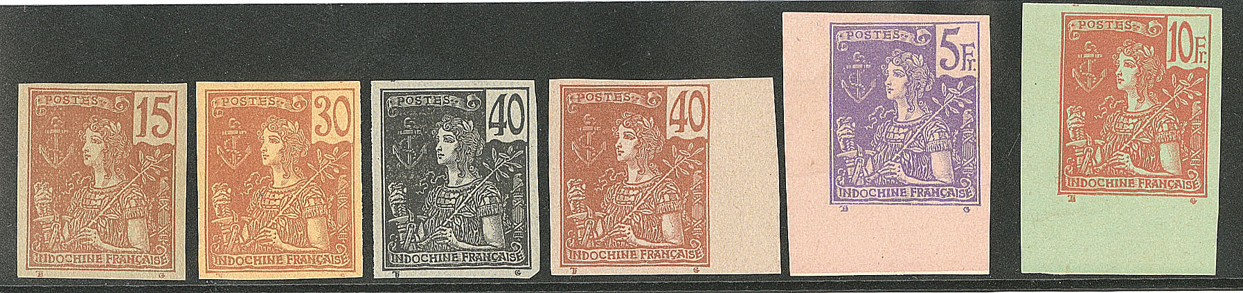 INDOCHINE. (*) Non dentelé. Nos 29a, 32a, 34(2 dont un brun), 39a cdf, 40a cdf. - TB (cote Yvert : 1950€) (Image)