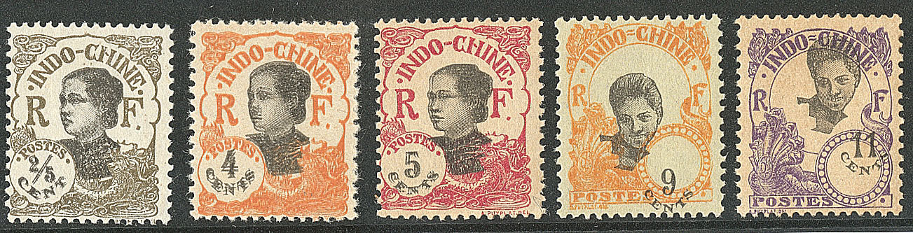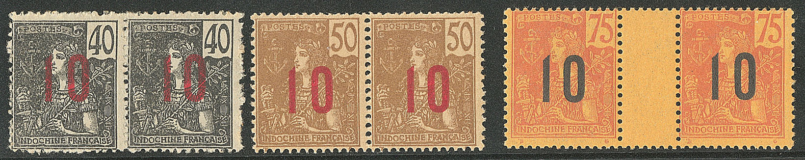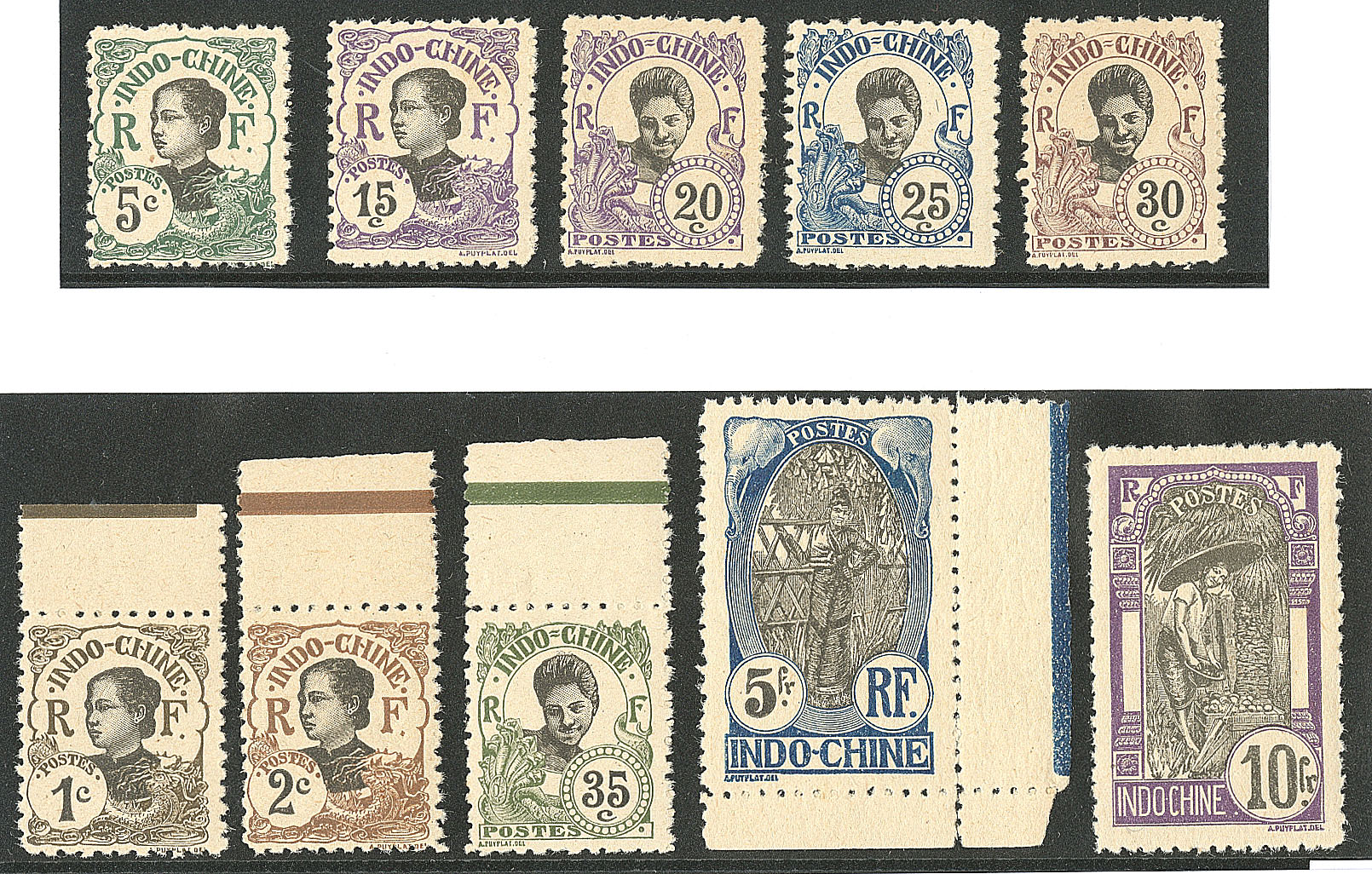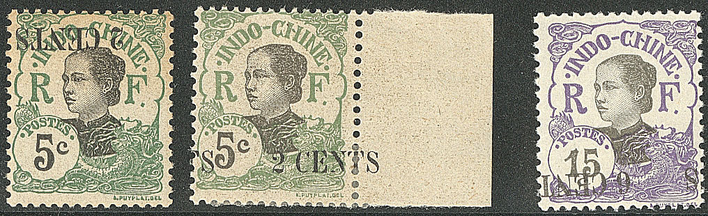 INDOCHINE. * Variétés. Nos 75a, 75c bdf, 77a. - TB (cote Yvert : 670€) (Image)