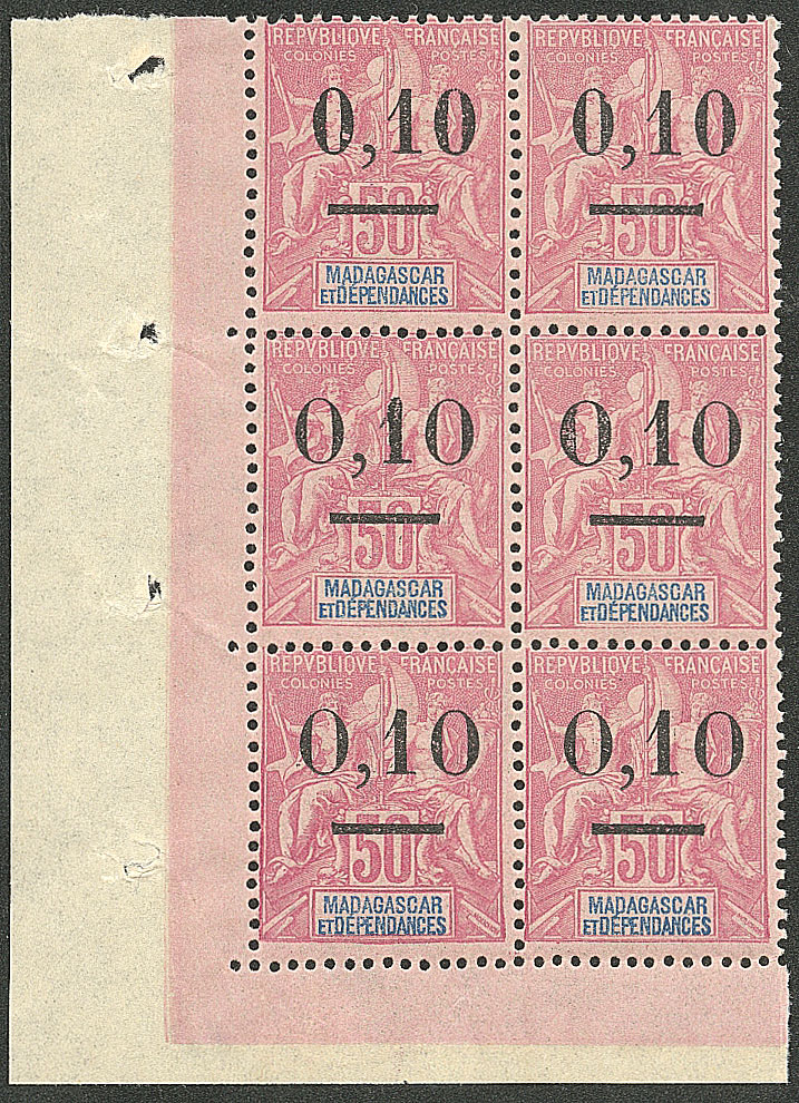 MADAGASCAR. ** Types I et II se tenant. Nos 58 paire + 53 bloc de quatre, formant bloc de six cdf. - TB (Image)