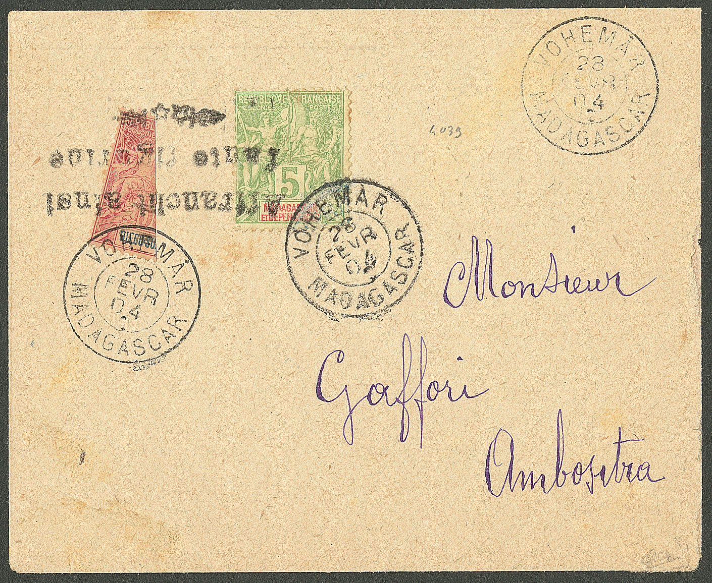 MADAGASCAR. Lettre. Coupés. No 91B + Poste 42A, sur enveloppe de Vohemar 28 févr 04. - TB. - R (cote Yvert : 4300€) (Image)