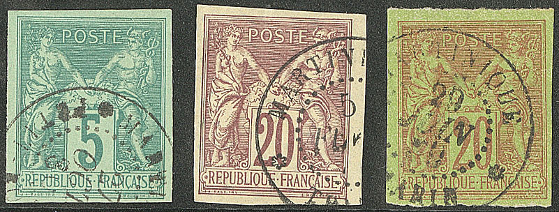 MARTINIQUE. Précurseurs. CG 31 obl Petit Bourg, 34 obl Trinité, 42 obl Marin. - TB (cote Yvert : 510€) (Image)