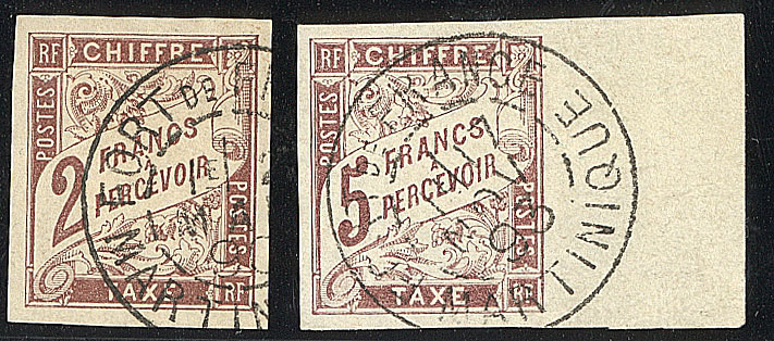 MARTINIQUE. Précurseurs. Taxe. CG 16, CG 17 bdf, obl cad Fort de France, superbe (cote Yvert : 205€) (Image)