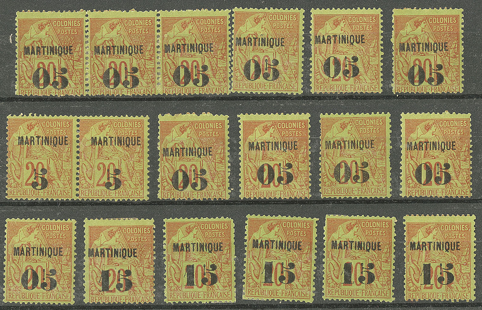 MARTINIQUE. * Nos 1 paire, 4 (11), 5 (5). - TB, B ou pd (cote Yvert : 1893€) (Image)