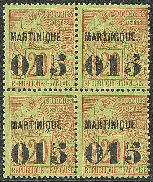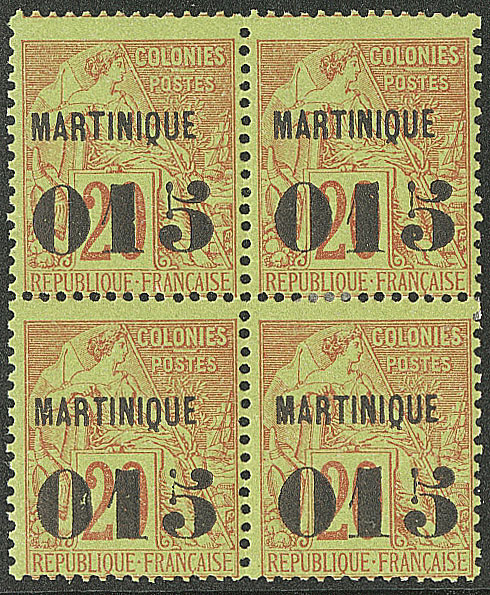 MARTINIQUE. ** No 6, bloc de quatre (deux ex *). - TB (cote Yvert : 630€) (Image)