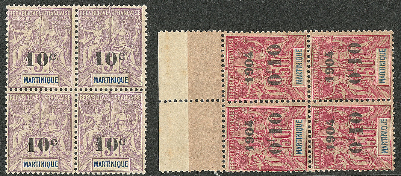 MARTINIQUE. ** Nos 53 bloc de quatre, 56 bloc de quatre bdf. - TB (cote Yvert : 424€) (Image)