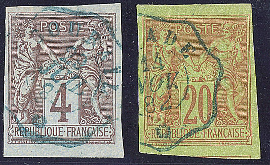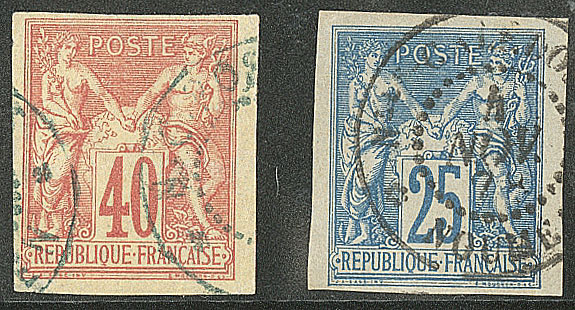 NOUVELLE-CALEDONIE. Précurseurs. CG 39 obl cad télégraphique "Bourail", CG 42 obl cad télégraphique "Balade". - TB (Image)