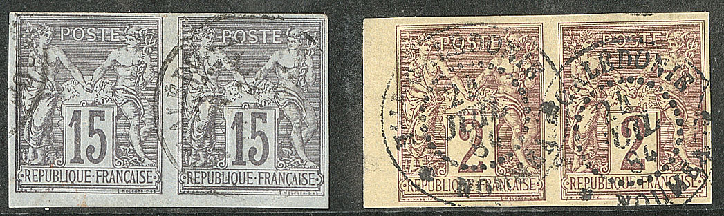 NOUVELLE-CALEDONIE. Précurseurs. CG 33 paire, CG 34 paire bdf (deux frappes). - TB (cote Yvert : 305€) (Image)