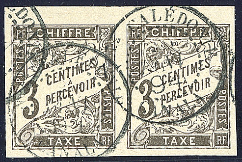 NOUVELLE-CALEDONIE. Précurseurs. Taxe. CG 3, paire bdf, obl cad "Canala" (deux frappes). - TB (Image)
