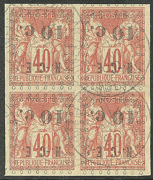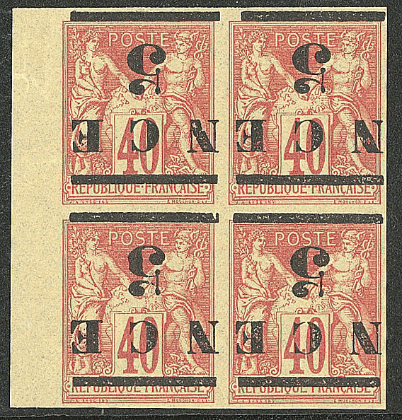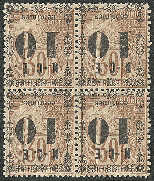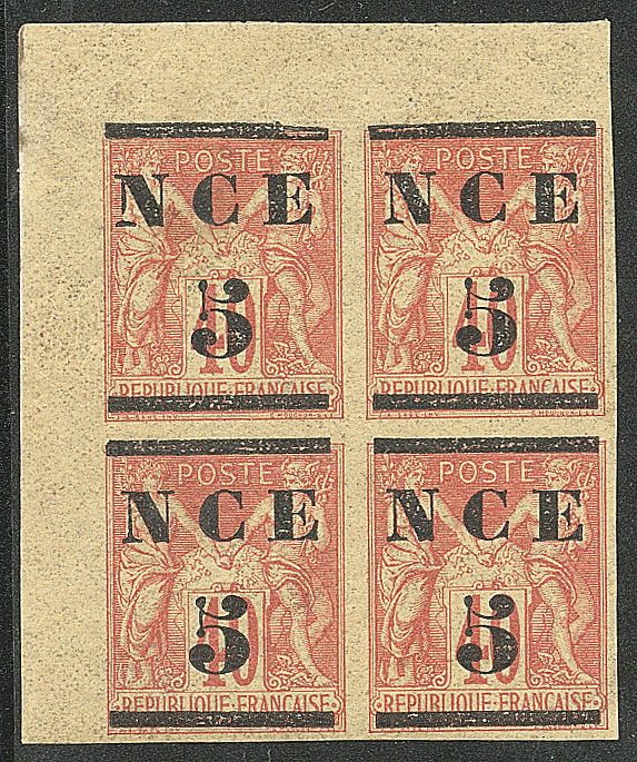 NOUVELLE-CALEDONIE. Surcharge renversée. No 11a, bloc de quatre. - TB (cote Yvert : 380€) (Image)