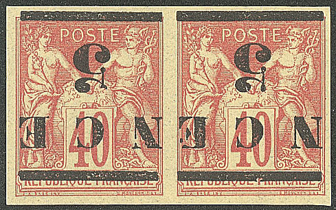 NOUVELLE-CALEDONIE. ** Surcharge renversée. No 6a, paire. - TB (cote Yvert : 170€) (Image)