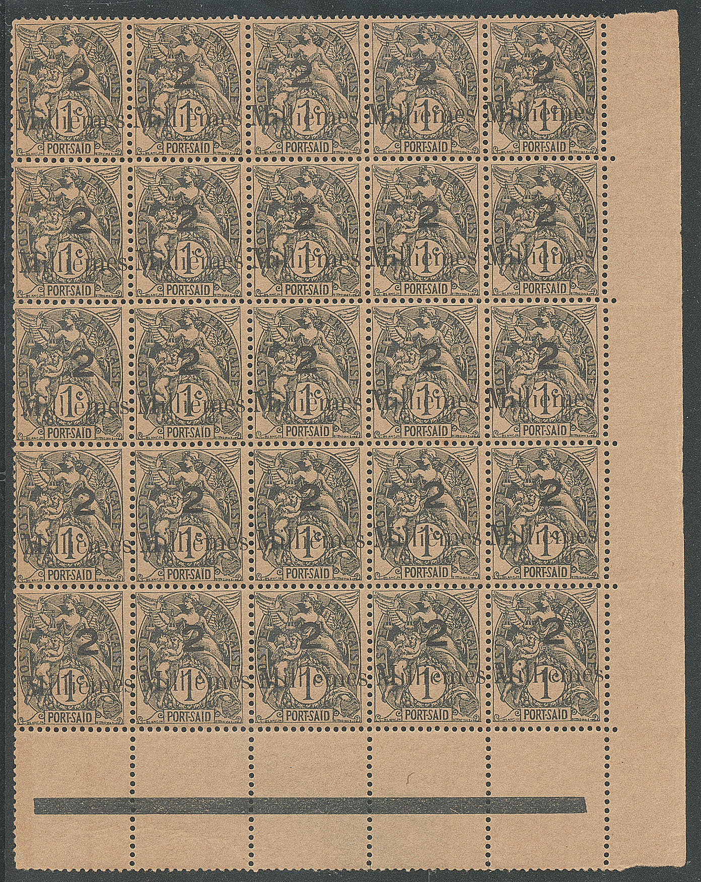 2383 nh imageCOLONIES FRANCAISES. PORT-SAÏD. ** Erreur. No 61A, bloc de 25 ex bdf, très frais. - TB (cote Yvert : 4375€) (Image)