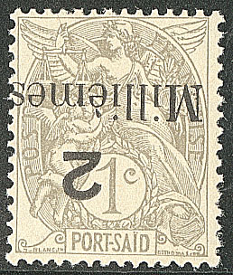 2384 nh imageCOLONIES FRANCAISES. PORT-SAÏD. ** Erreur. Surcharge renversée. No 61Aa, sur papier X. - TB (Image)