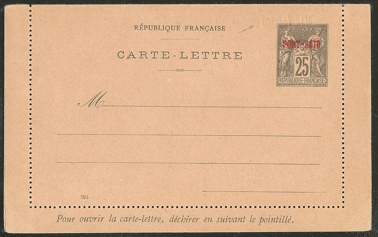 2388 c imageCOLONIES FRANCAISES. PORT-SAÏD. Lettre. Entiers postaux. CL No 4, avec triple surcharge dont deux à sec. - TB. - R (Image)