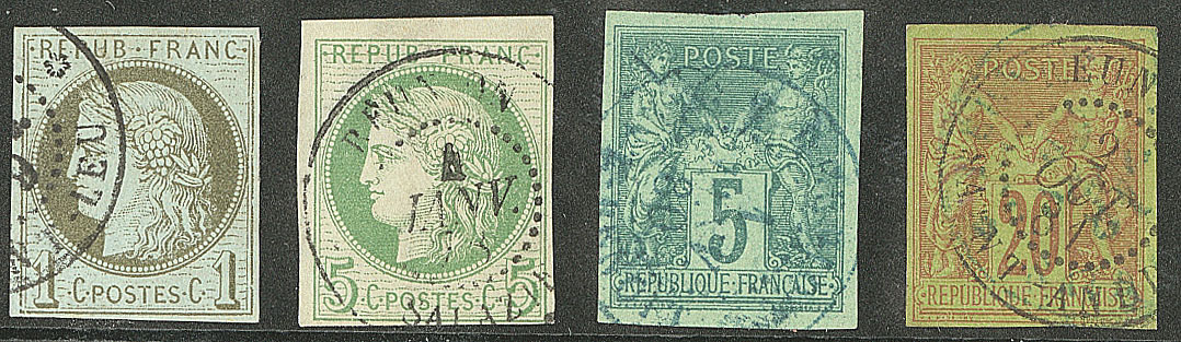 2399 imageCOLONIES FRANCAISES. REUNION. Précurseurs. CG 27 obl "St Joseph", 30 et 31 obl "Possession", 42 obl "Hellbourg" et 45 obl "St Denis". - TB (Image)