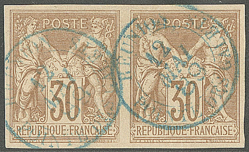 2397 imageCOLONIES FRANCAISES. REUNION. Précurseurs. CG 26, paire obl cad bleu "Pointe des Galets" mai 89, deux frappes. - TB (Image)