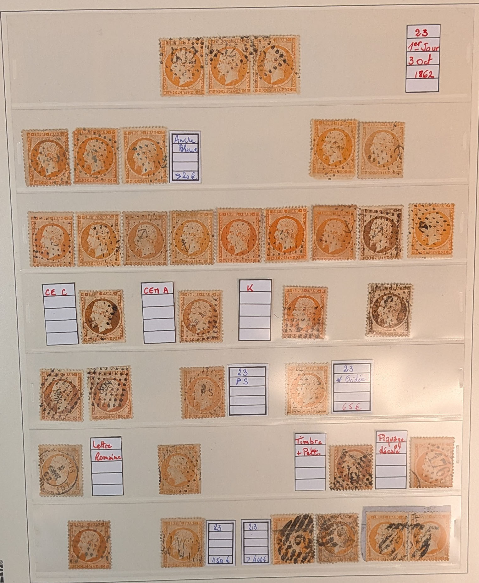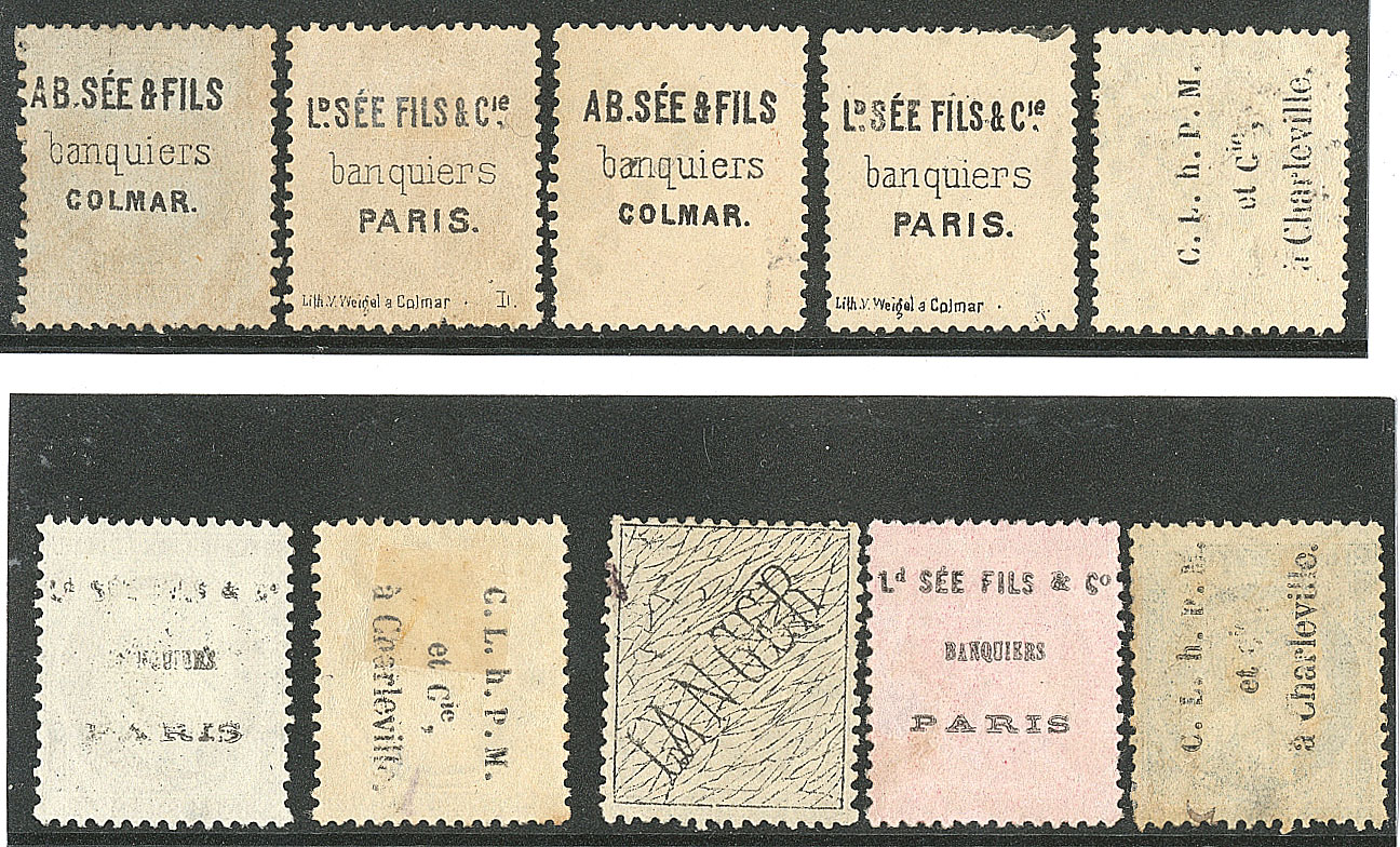 Inscriptions dorsales. Nos 29Bh, 30, 31e(2), 38l, 55c, 56f, 56g, 57g et 60Ae. - TB (N°et cote SM: 1550€) (Image)