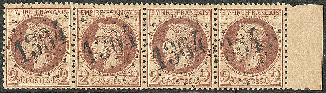 26Aa, chocolat I, bande de quatre bdf avec amorce de filet d'encadrement. - TB (Image)