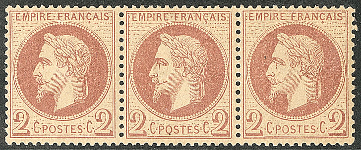 No 26B, rouge-brun clair II, bande de trois (un ex *). - TB (cote Yvert : 660€) (Image)