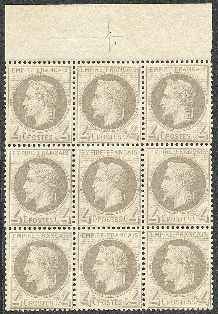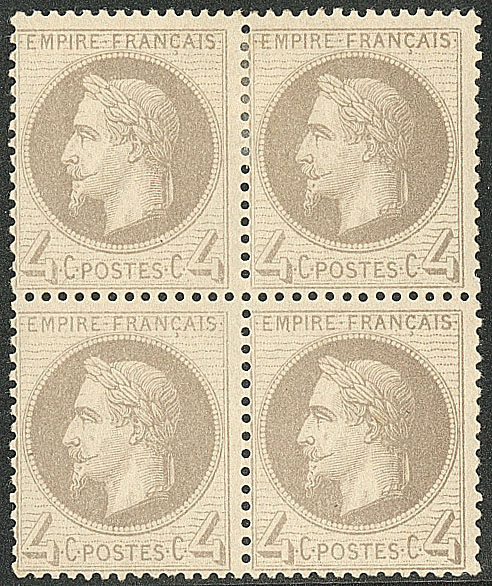 No 27Bb, gris jaunâtre, bloc de quatre (deux ex *). - TB (cote Yvert : 1600€) (Image)