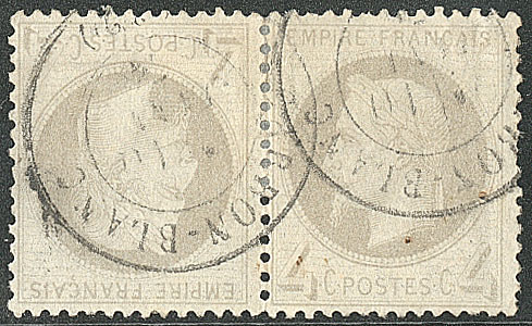Tête-bêche. No 27B, paire, obl cad Carbon-Blanc, deux dents courtes mais TB. - RR (cote Yvert : 20000€) (Image)