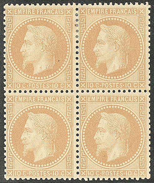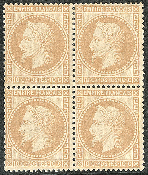 No 28B, bistre, bloc de quatre (deux ex *). - TB (cote Yvert : 1800€) (Image)