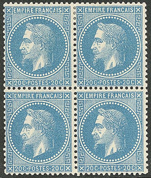 No 29B, bleu, bloc de quatre (deux ex *), très frais. - TB (cote Yvert : 1450€) (Image)