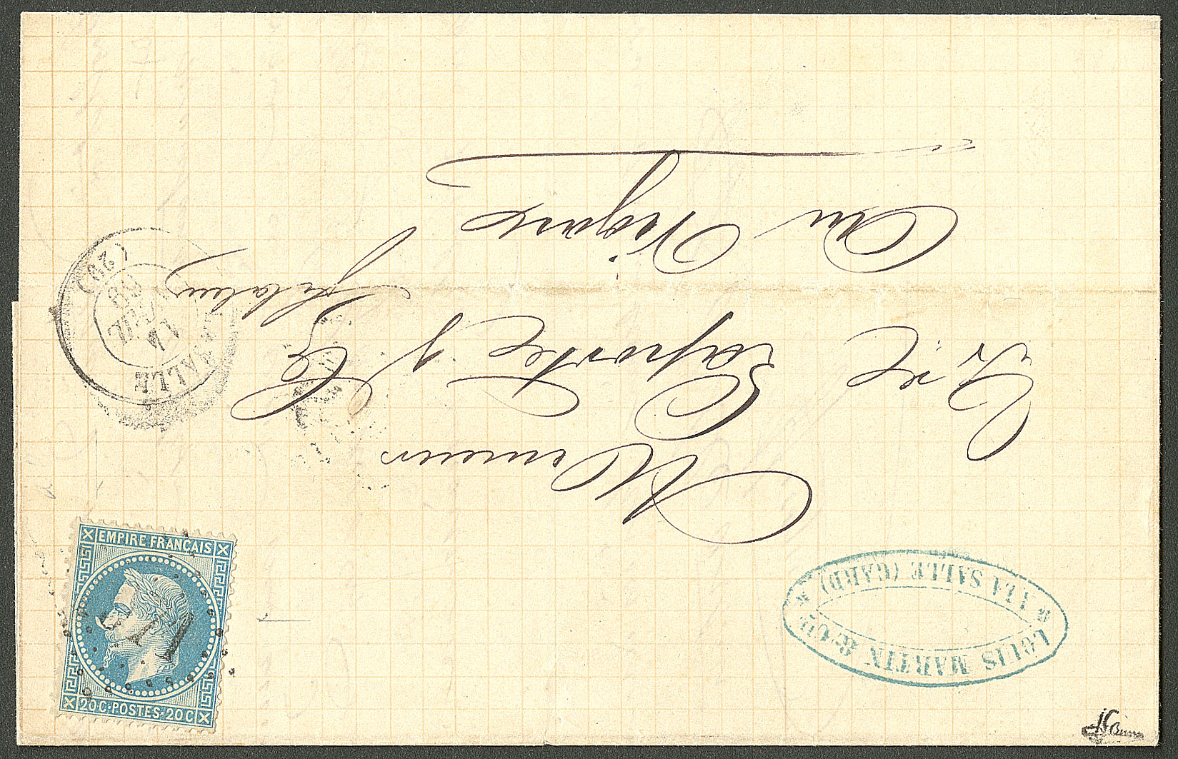 LAURE.Lettre. A la corne. No 29Bb, sur lettre de Lassale avril 69. - TB (cote Yvert : 450€) (Image)