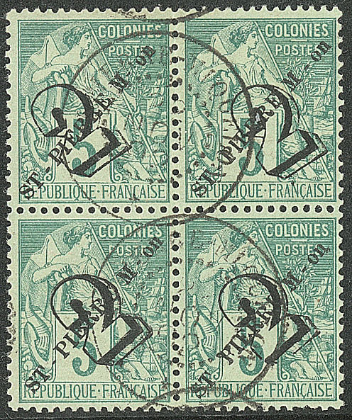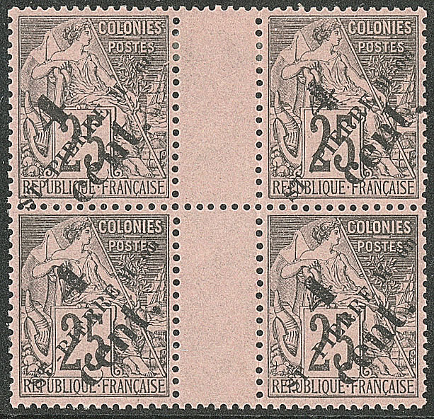 SAINT-PIERRE-ET-MIQUELON. ** Sans tiret après "St". No 45e, (case 34) TAN dans un bloc de quatre. - TB (cote Yvert : 845€) (Image)