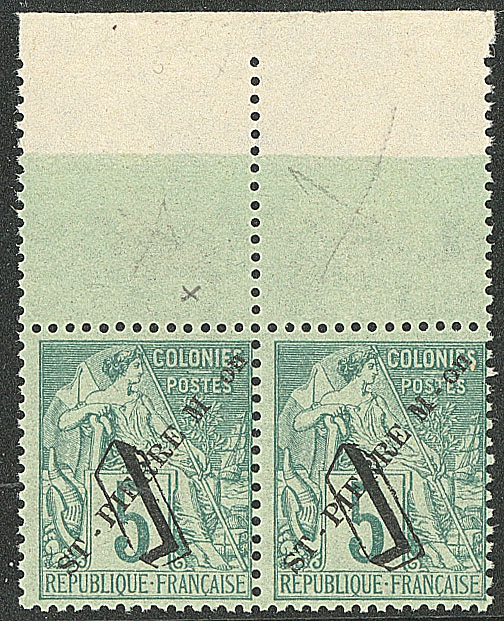 SAINT-PIERRE-ET-MIQUELON. ** Sans tiret après "M". No 48d (case 7), en paire bdf avec normal. - TB (cote Yvert : 840€) (Image)