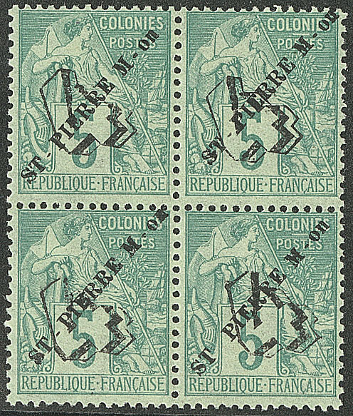 SAINT-PIERRE-ET-MIQUELON. * "o" et "n" espacés. No 51, case 2, TAN dans un bloc de six cdf (4 ex **). - TB (Image)