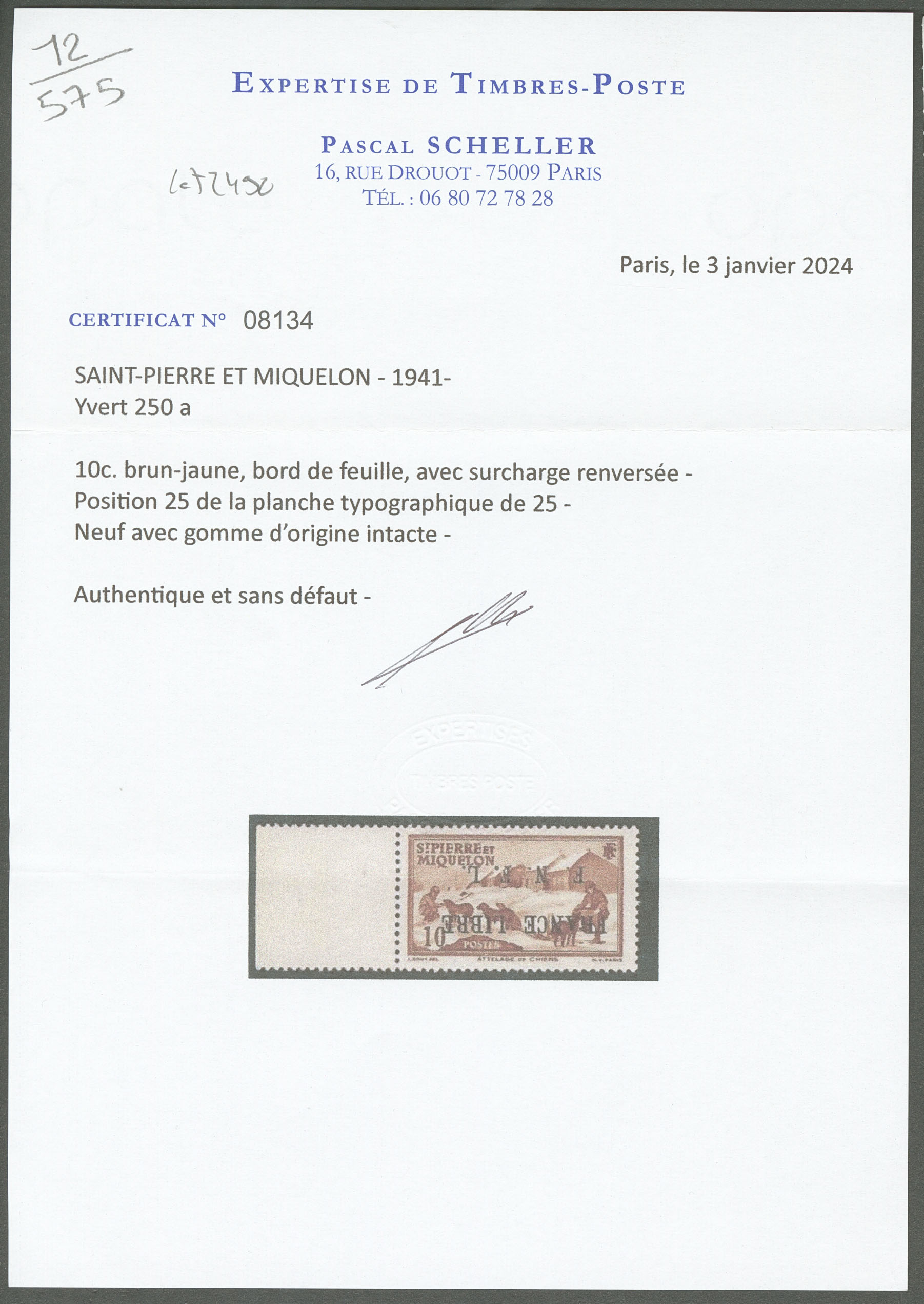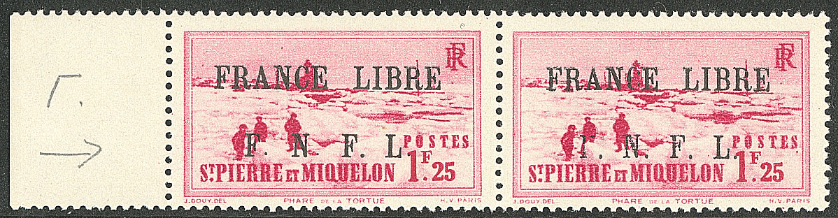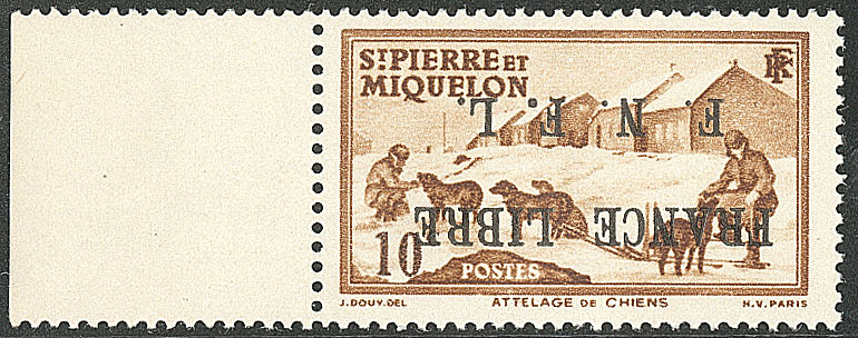 SAINT-PIERRE-ET-MIQUELON. ** France-Libre. Surcharge renversée. No 250a, bdf (pos. 25). - TB. - R (cote Yvert : 2350€) (Image) (Image2)