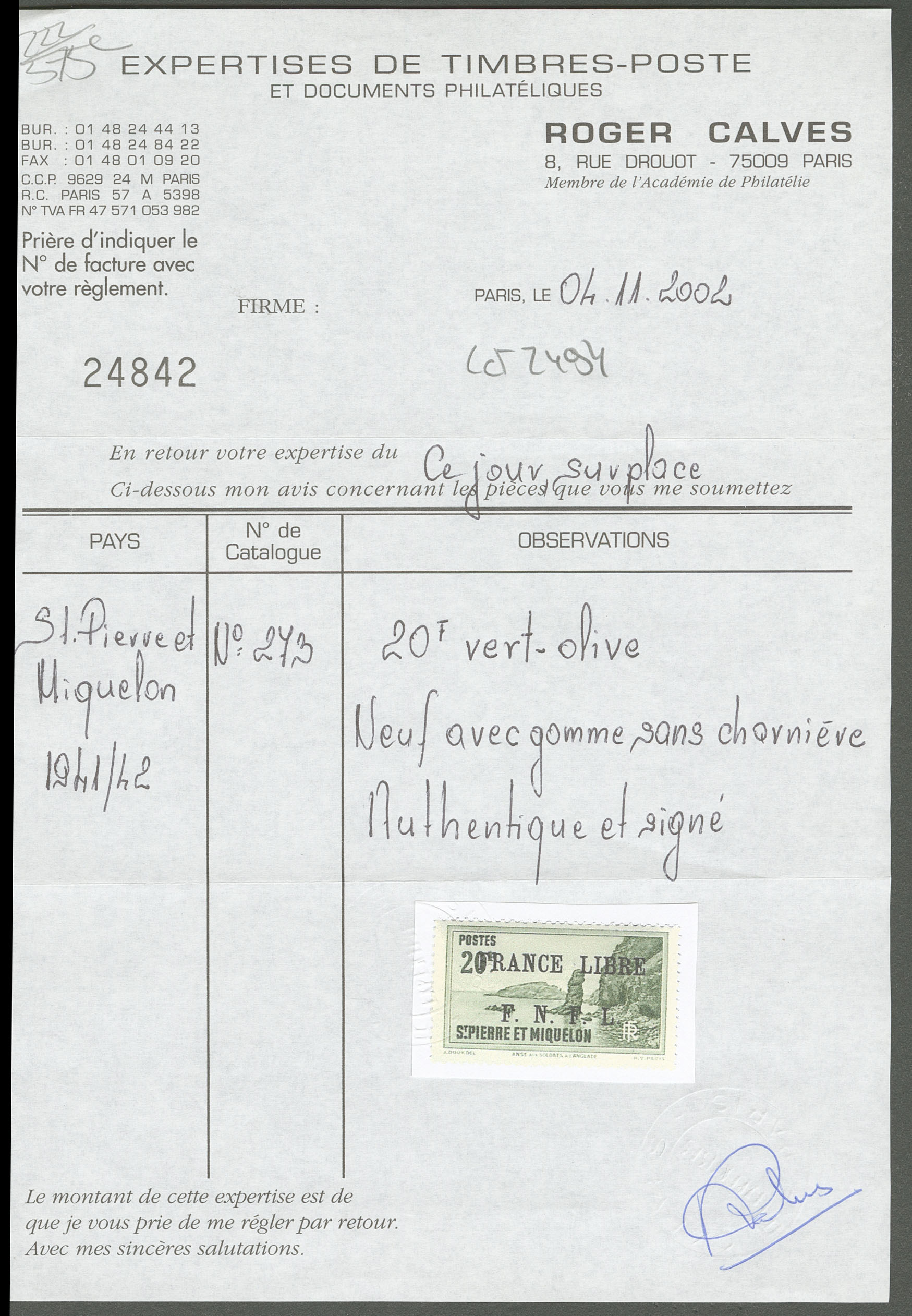 SAINT-PIERRE-ET-MIQUELON. ** France-Libre. No 233, superbe. - RR (cote Yvert : 3450€) (Image)