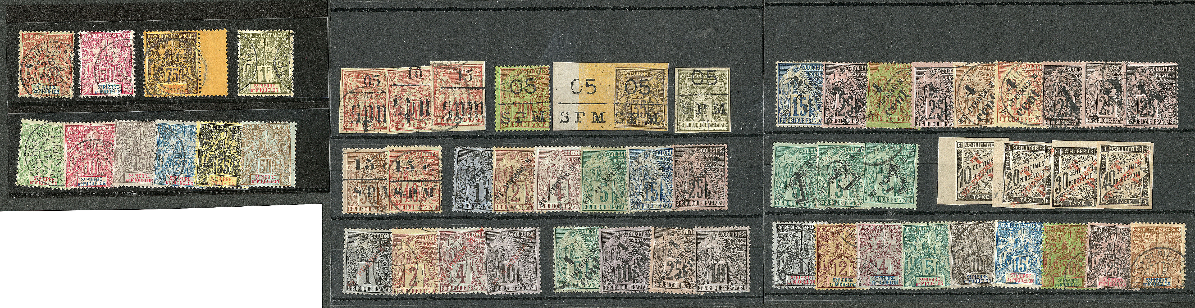 SAINT-PIERRE-ET-MIQUELON. Collection. 1885-1908 (Poste), valeurs et séries moyennes entre les N°5 et 77, qqs ex *. - TB (cote Yvert : 2105€) (Image)