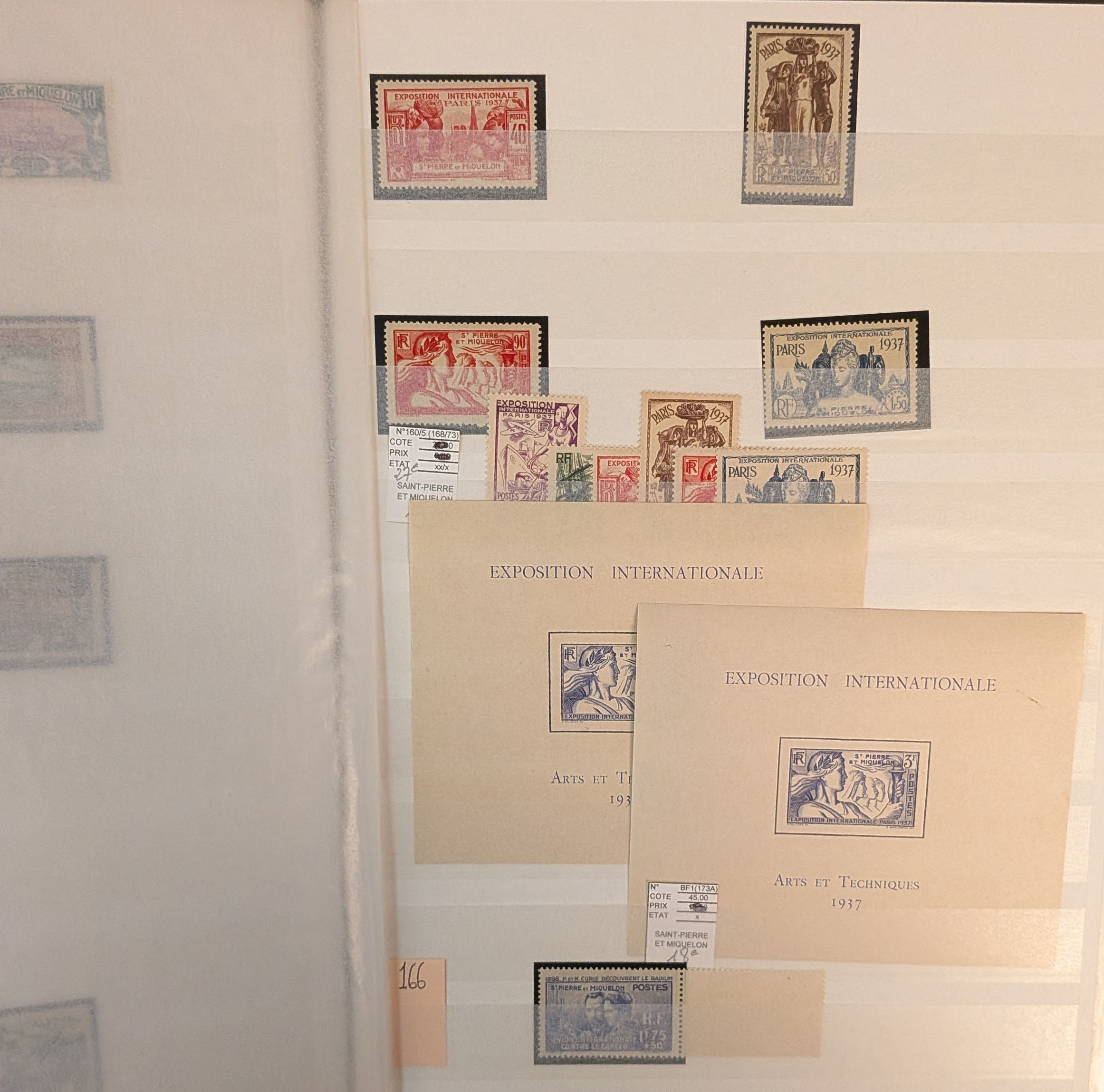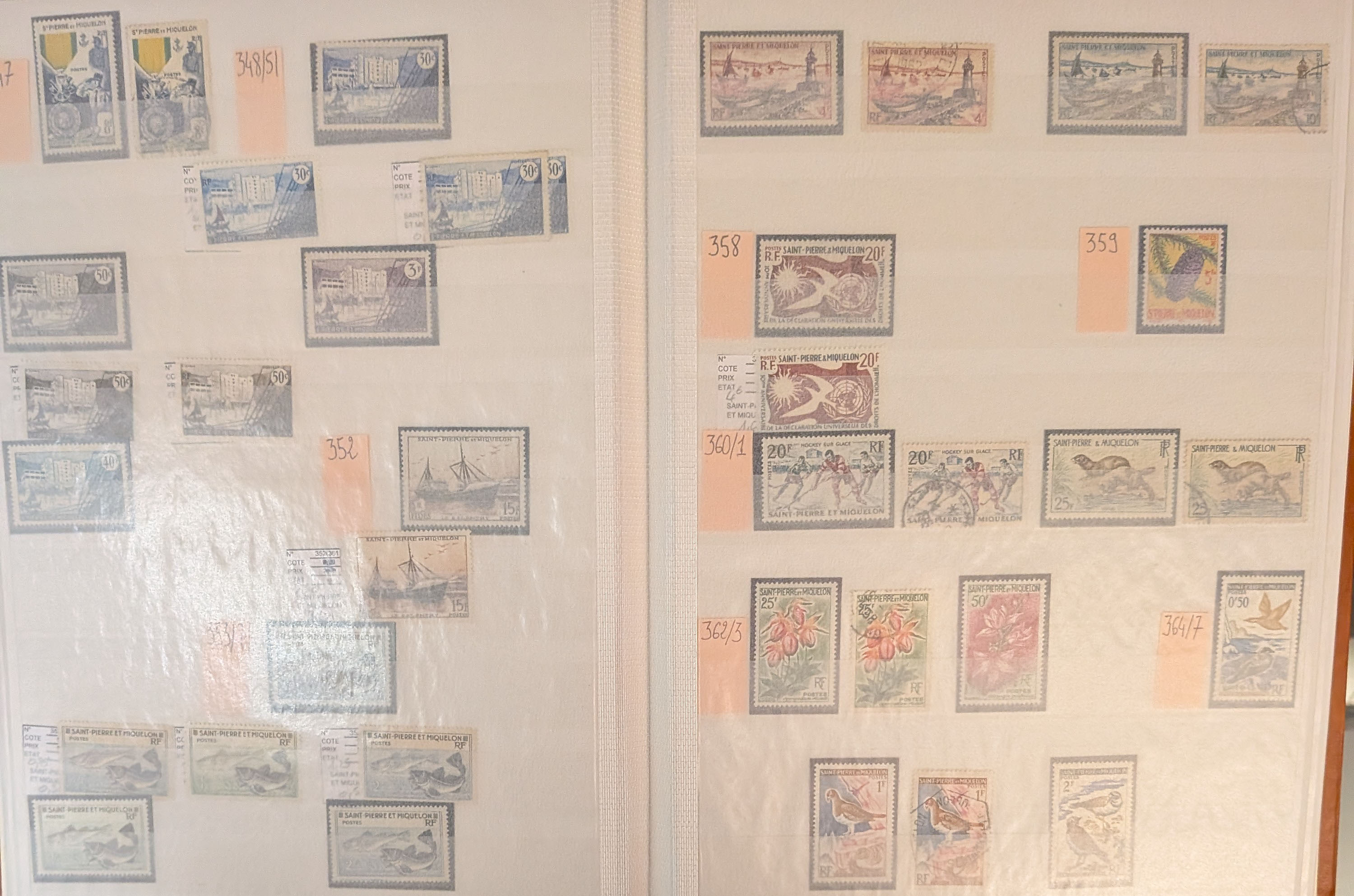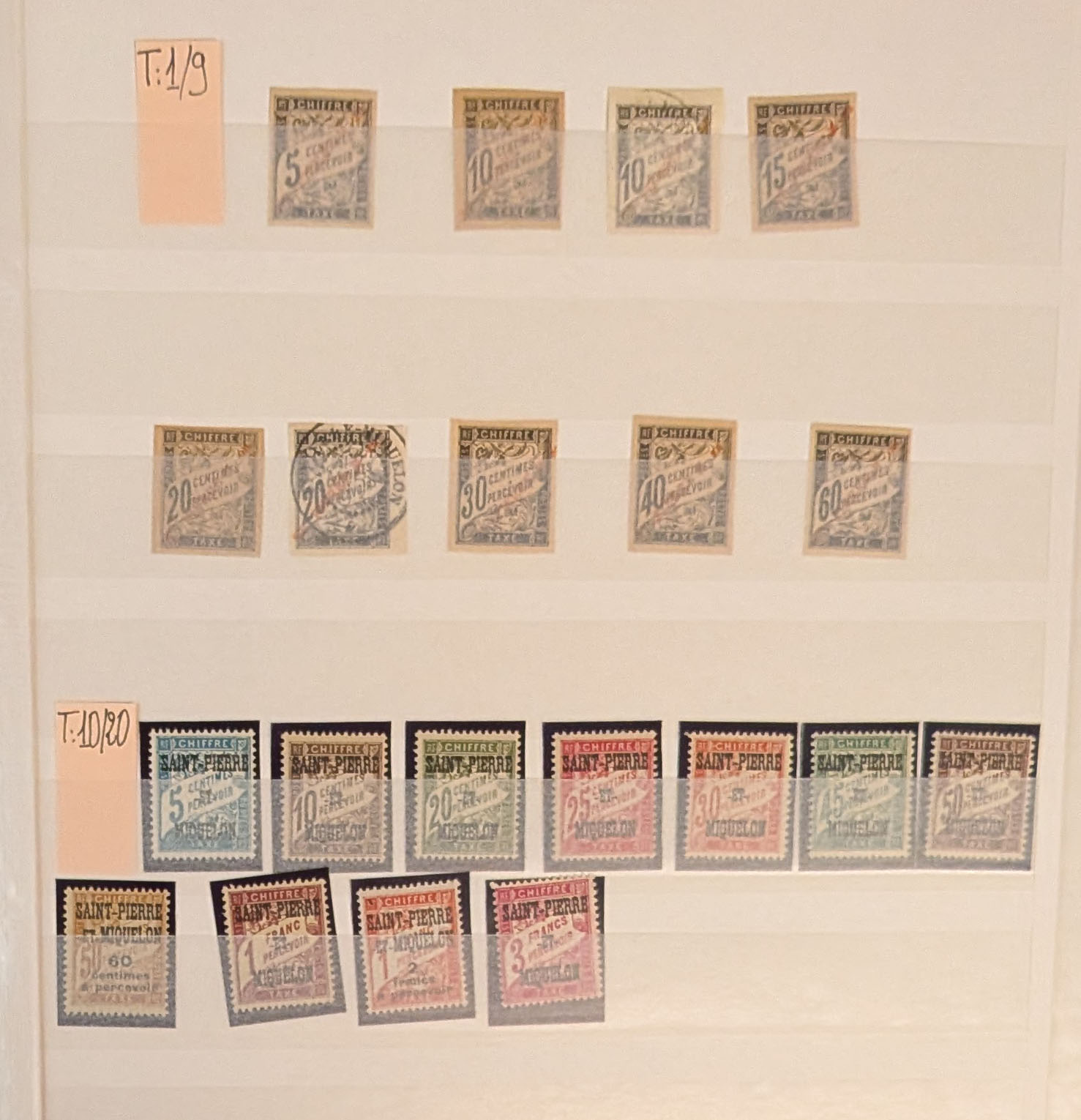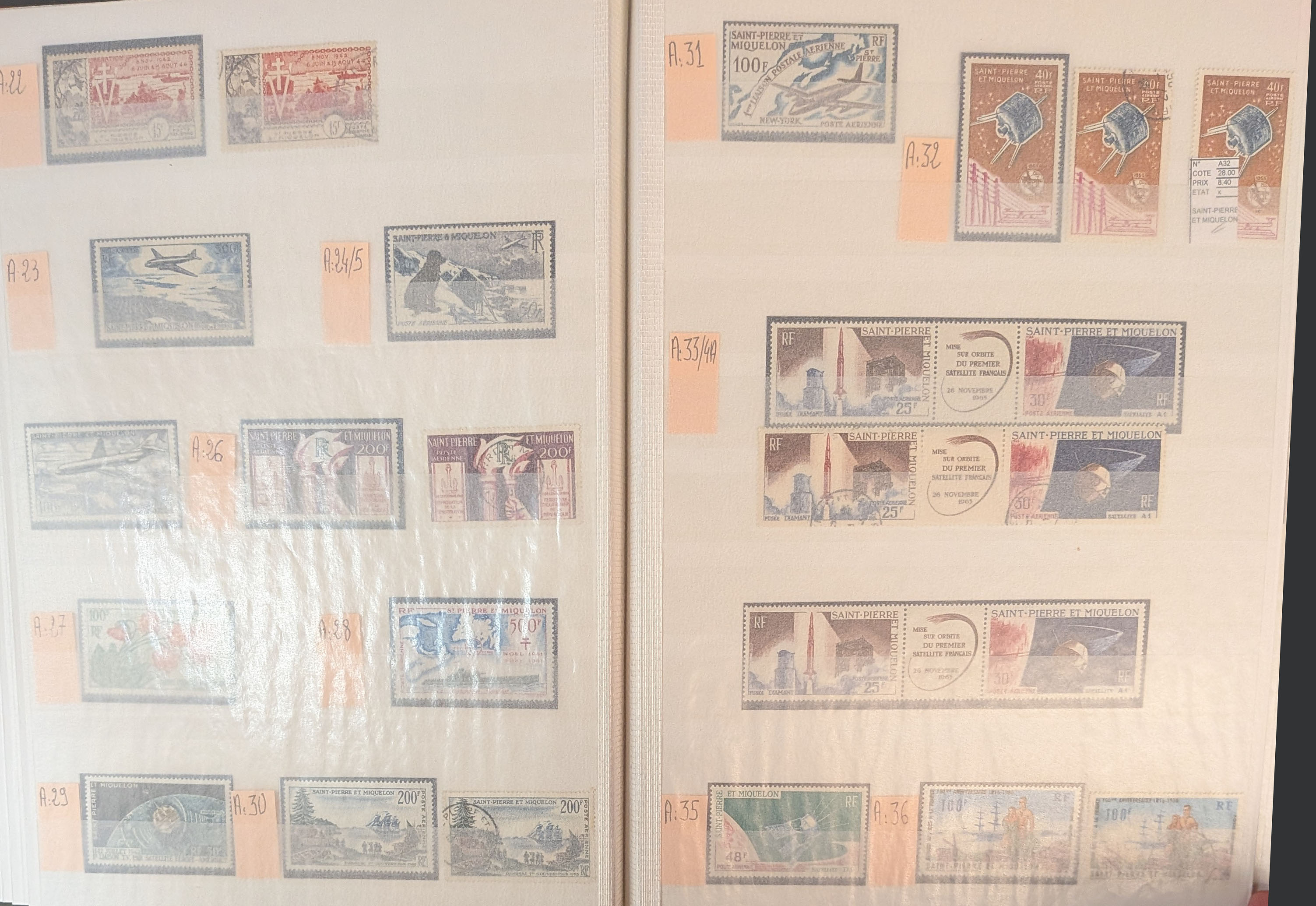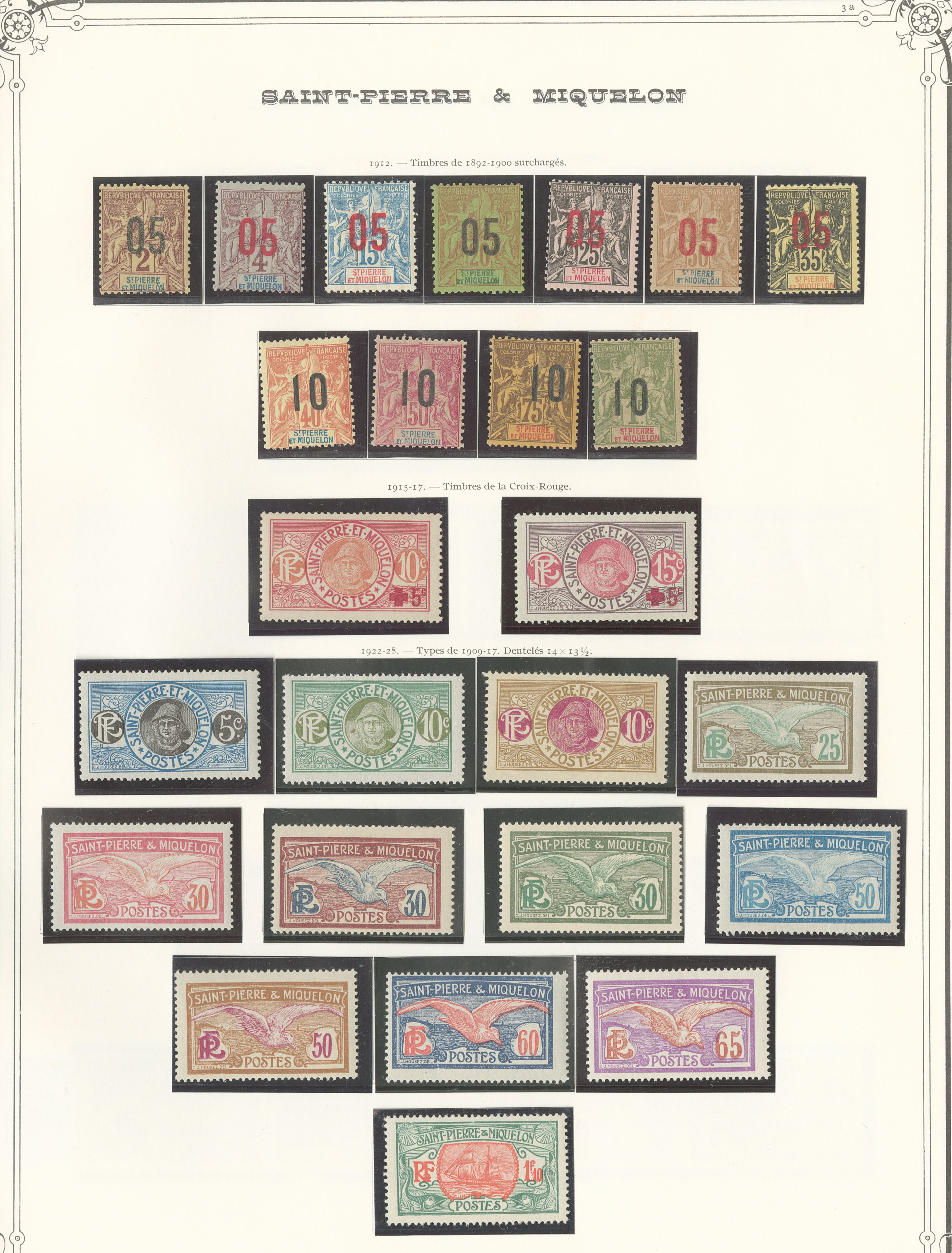 SAINT-PIERRE-ET-MIQUELON. ** Collection. 1885-2003 (Poste, PA, Taxe), complète après 1909 sauf France-Libre, dont doubles, des ex * ou obl, en 2 albums. - TB (Image) (Image2)