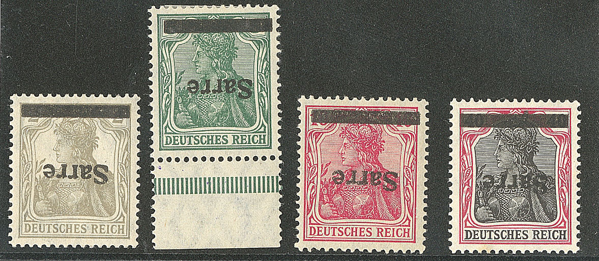 SARRE . * Surcharge renversée. Nos 1a, 4a bdf, 6a, 12a. - TB (cote Yvert : 2700€) (Image)