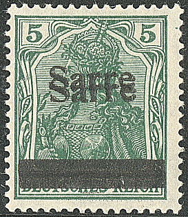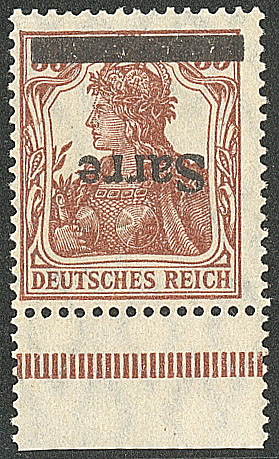 SARRE . ** Surcharge renversée. No 6a, bdf. - TB (cote Yvert : 1300€) (Image)