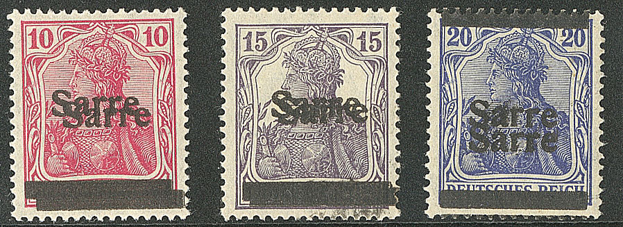 SARRE . * Double surcharge. Nos 6b à 8b. - TB (cote Yvert : 2950€) (Image)