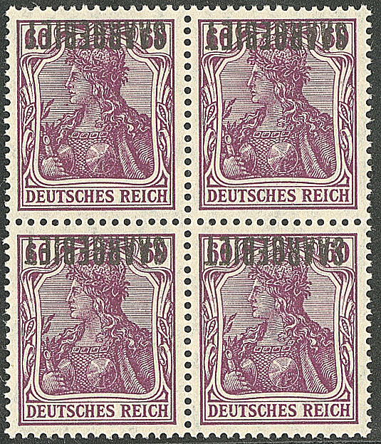 SARRE . ** Surcharge renversée. No 44a, bloc de quatre. - TB (cote Yvert : 840€) (Image)