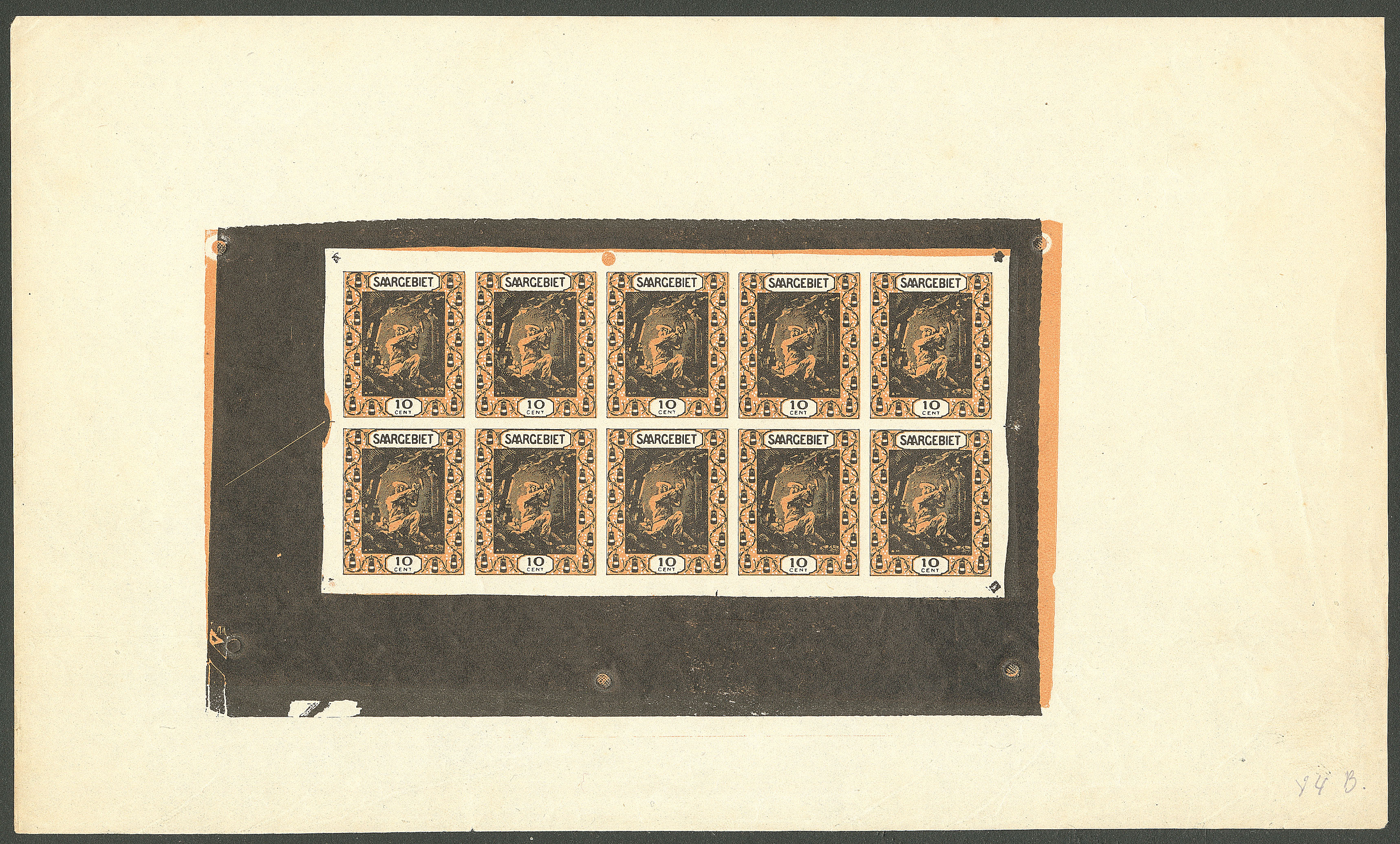 SARRE . ** Essai en noir et orange. No 54, panneau de dix ex sur feuillet 285x170mm. - TB. - R (Image)