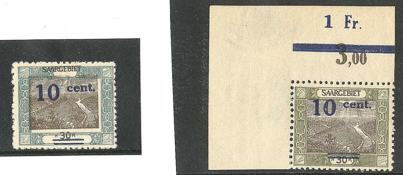SARRE . ** Double surcharge. No 21a, bdf. - TB (cote Yvert : 950€) (Image)