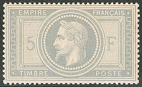 "5" et "F" en bleu. No 33A, violet-gris, superbe. - RRR (cote Yvert : 11500€) (Image)