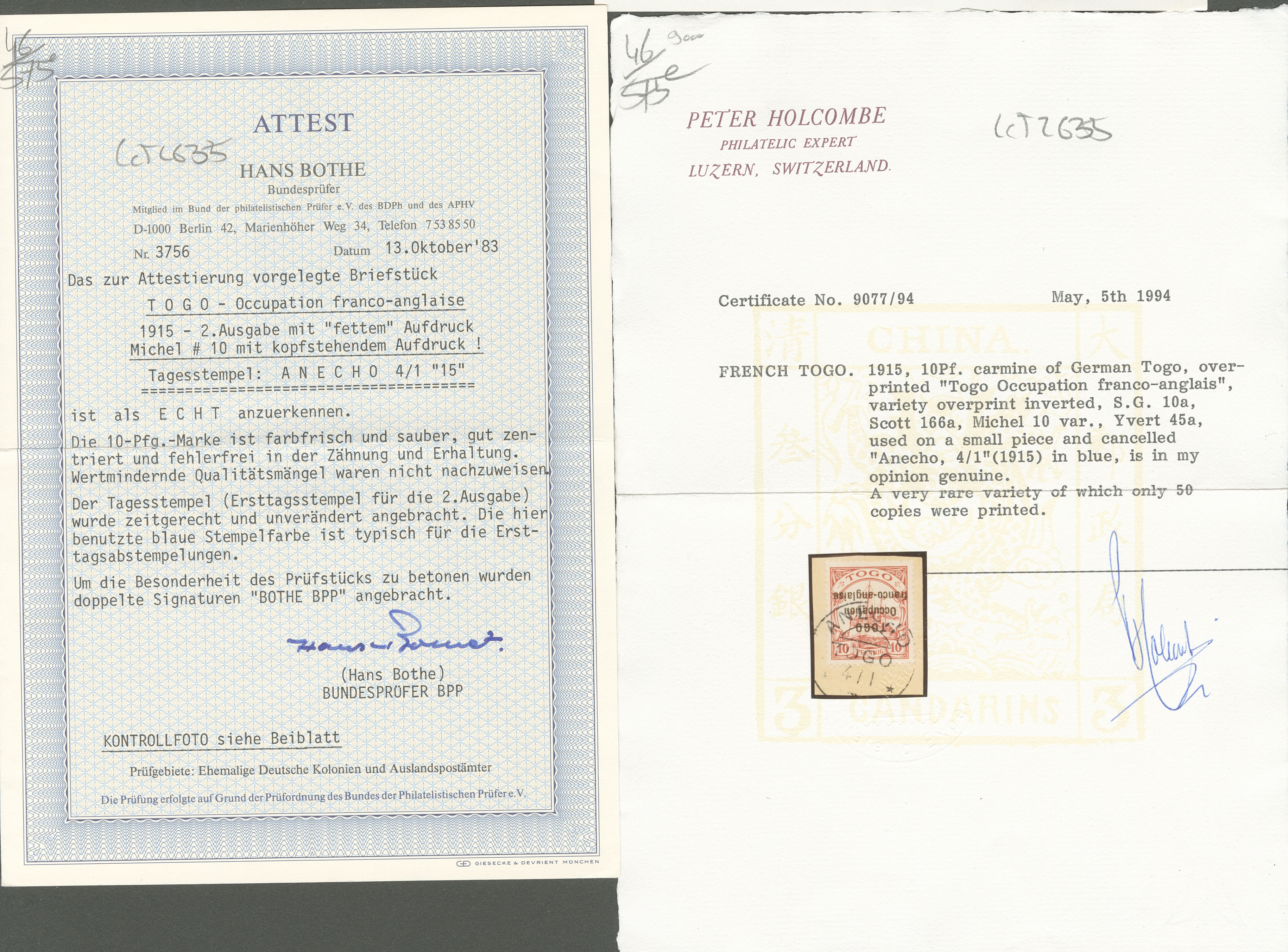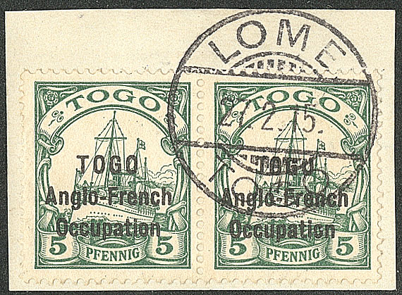 TOGO. Surcharge renversée. No 45a, sur petit fragment. - TB. - RRR (Certificats Holcombe et Bothe) (cote Yvert : 25000€) (Image) (Image2)