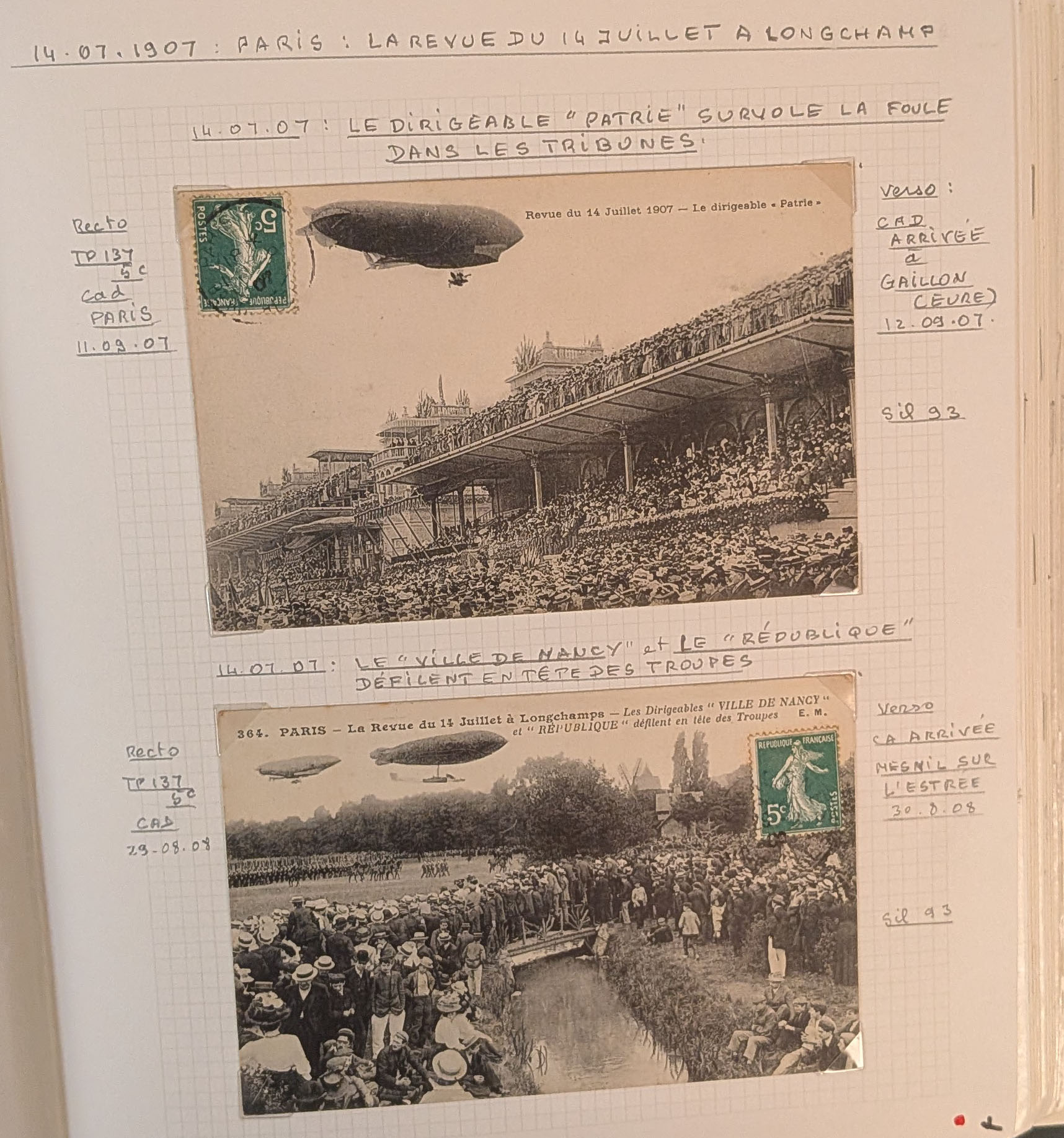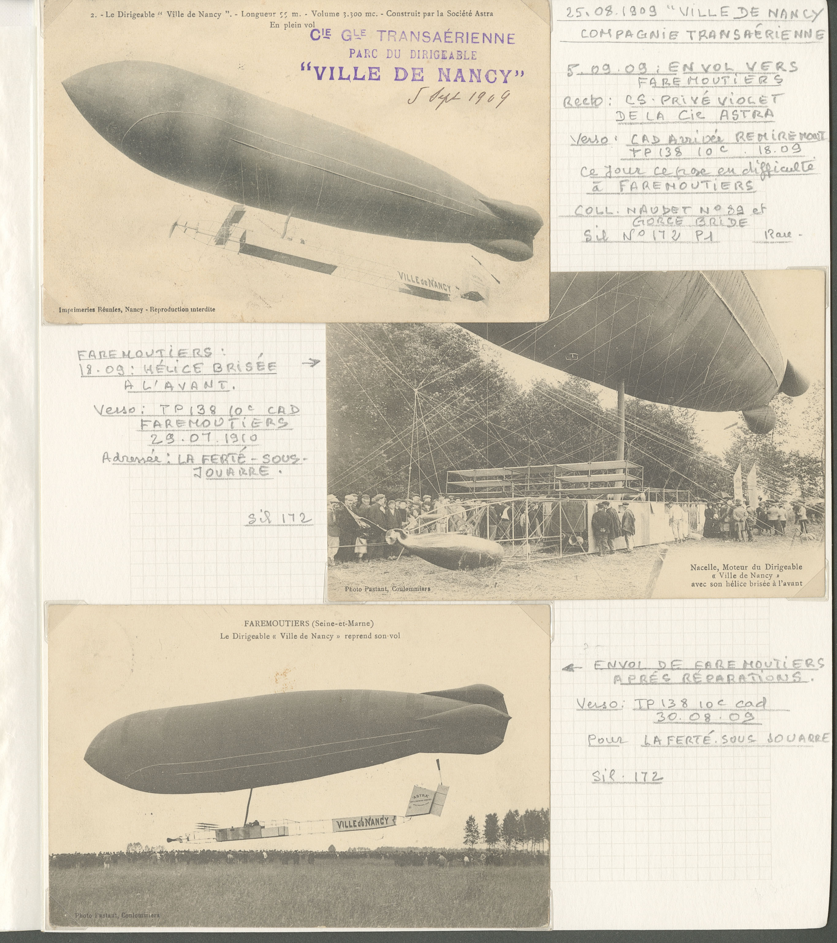 2773 c imagePOSTE AERIENNE. BALLONS. Lettre. Dirigeable "Ville de Nancy". 5 VS Sil. 177 et 5 CP du dirigeable dont Sil. 172 (3) et 177 (2). - TB (Image) (Image2) (All Images)